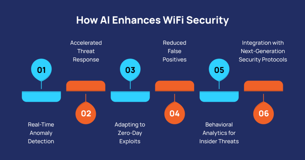 AI complements rather than replaces traditional security measures. Multi-factor authentication, robust encryption like WPA3, and solid cryptographic processes remain essential foundations that AI-driven approaches supplement with adaptive, real-time threat detection capabilities.