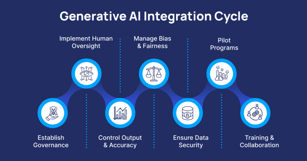 Safe integration is mandatory for banks adopting generative AI for banking. Follow the guardrails and design principles below for a viable adoption: